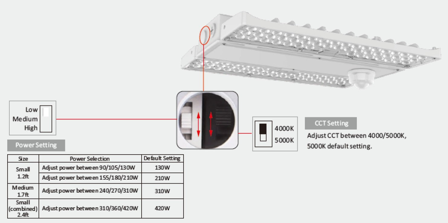Adjustable CCT 4000K or 5000K (Default setting).