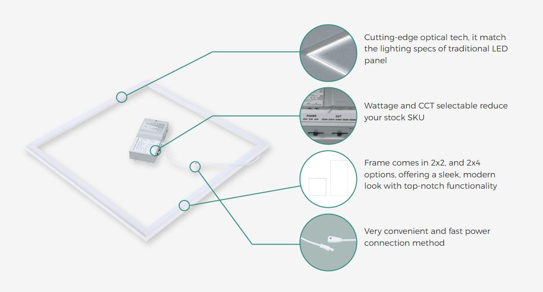Cutting-edge optical tech, it matches the lighting specs of traditional LED panels..