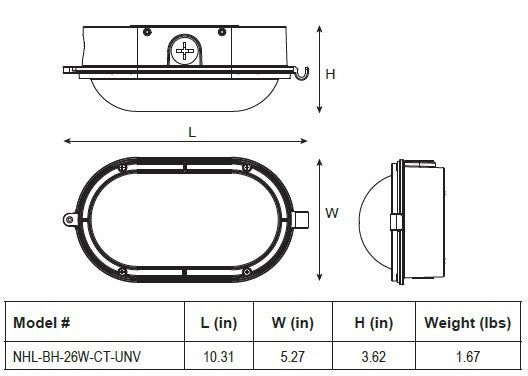 The newest addition to the bulkhead line, the NHL-BH delivers durable, high-performance outdoor lighting with field-selectable lumen output and three color temperature flexibility (3000K/4000K/5000K). Housed in a rugged, powder-coated die-cast aluminum bronze enclosure, the NHL-BH is IP65 and IK08 rated for demanding wet-location applications. Universal 120–277V operation, integrated photocell, and long-life LEDs make it a reliable, low-maintenance solution for commercial and industrial exteriors. Choose 3 distinct looks when you pair the base luminaire with a faceplate. Perfect for nautical themes, marina and harbor lighting, as well as general building lighting that will provide a new and exciting look over traditional style wallpacks.