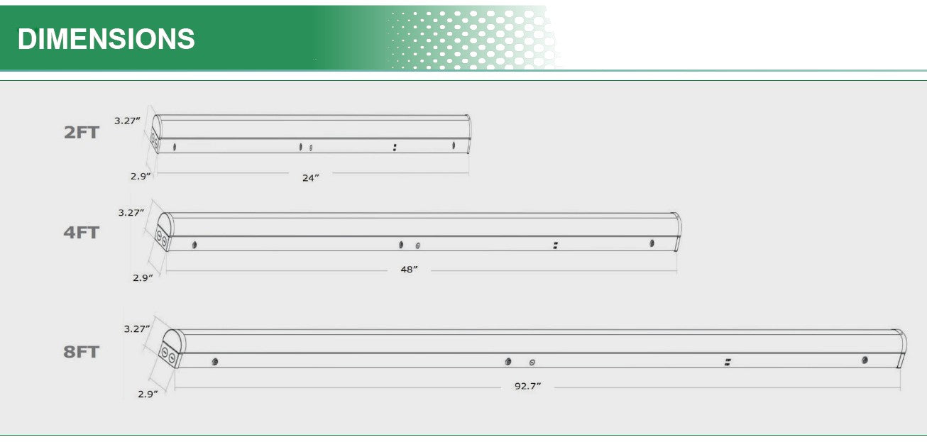to resist corrosion, discoloration, and scratching. Damp Location rated. Four, and eight foot LED.