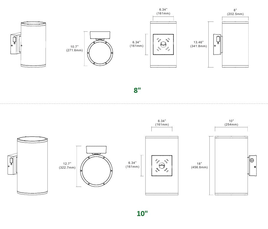 The LED Cylinder Up/Down light series is elegant and functional. With a modern architectural style, it is available with three different mounting options, wattage and CCT selectable. The fixture provides high flexibility for all environments and allow to you tailor it to your lighting needs. The high performance LEDs and long lasting driver also provide high efficiency and longevity. The LCUD series is perfect for exterior applications where you need something more than a traditional style wallpack. Great for offices and schools, contemporary housing units, entranceways and upscale buildings.